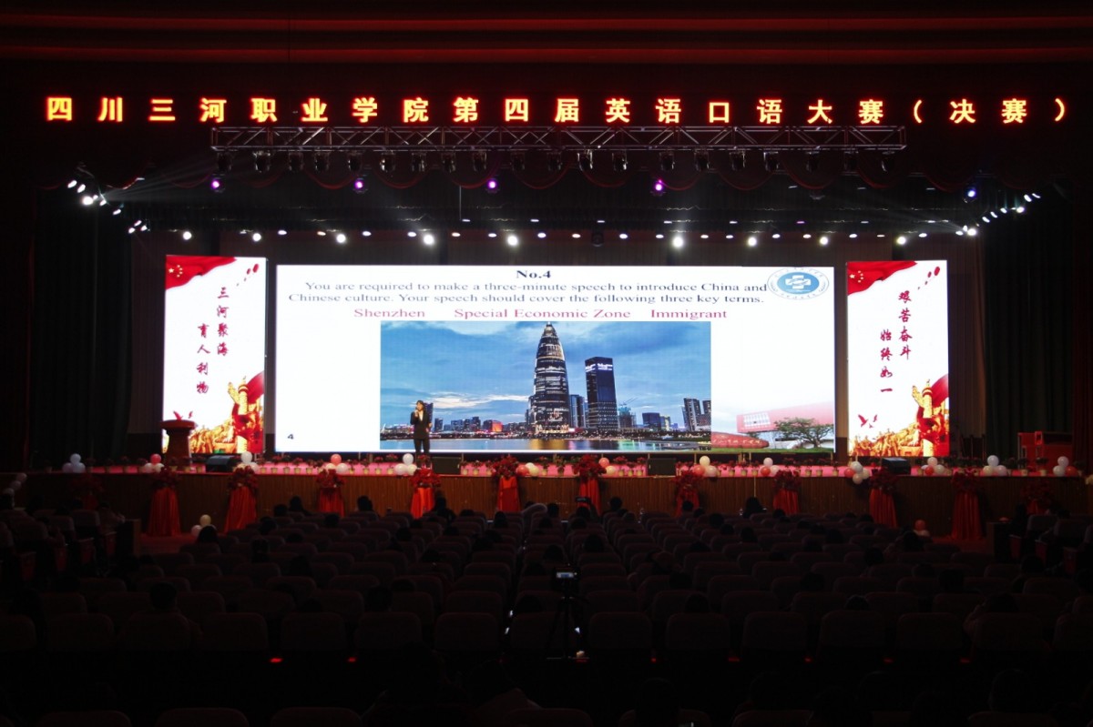 11月20日晚,四川三河职业学院第四届英语口语大赛决赛在博山礼堂举行。学校党委副书记王华、经管学院院长冯俊学、思政与基础教学部副主任黄道勋等领导出席,外语教研室英语教师担任评委,600余人观看了比赛。
