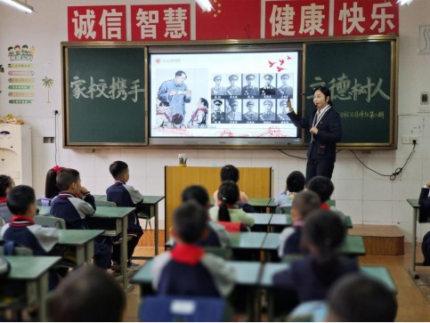 王老师对伟大领袖毛泽东的故事、开国十大元帅英雄事迹、中国奥运冠军体育精神等进行了生动的讲述,通过对红色故事《闪闪的红星》中潘冬子一家“大英雄”和“小英雄”的形象讲解,围绕思想启蒙与价值引导,让学生知党情、懂党恩,让学生初步形成热爱党、拥护党的领导的朴素情感,强化对党的领导的认同。