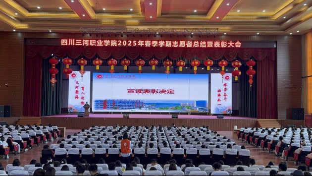 4 月 23 日中午,校团委在博山礼堂组织召开 2025 年春季学期志愿者总结暨表彰大会,表彰在单招考试、专升本考试、第十二届春季运动会、合江半程马拉松等重大活动中表现优异的志愿者。学校党委副书记、副校长王华出席会议并讲话,校团委书记郭文宇、副书记巩娜和700余名学生志愿者参加了会议。校团委老师刘娅主持会议。