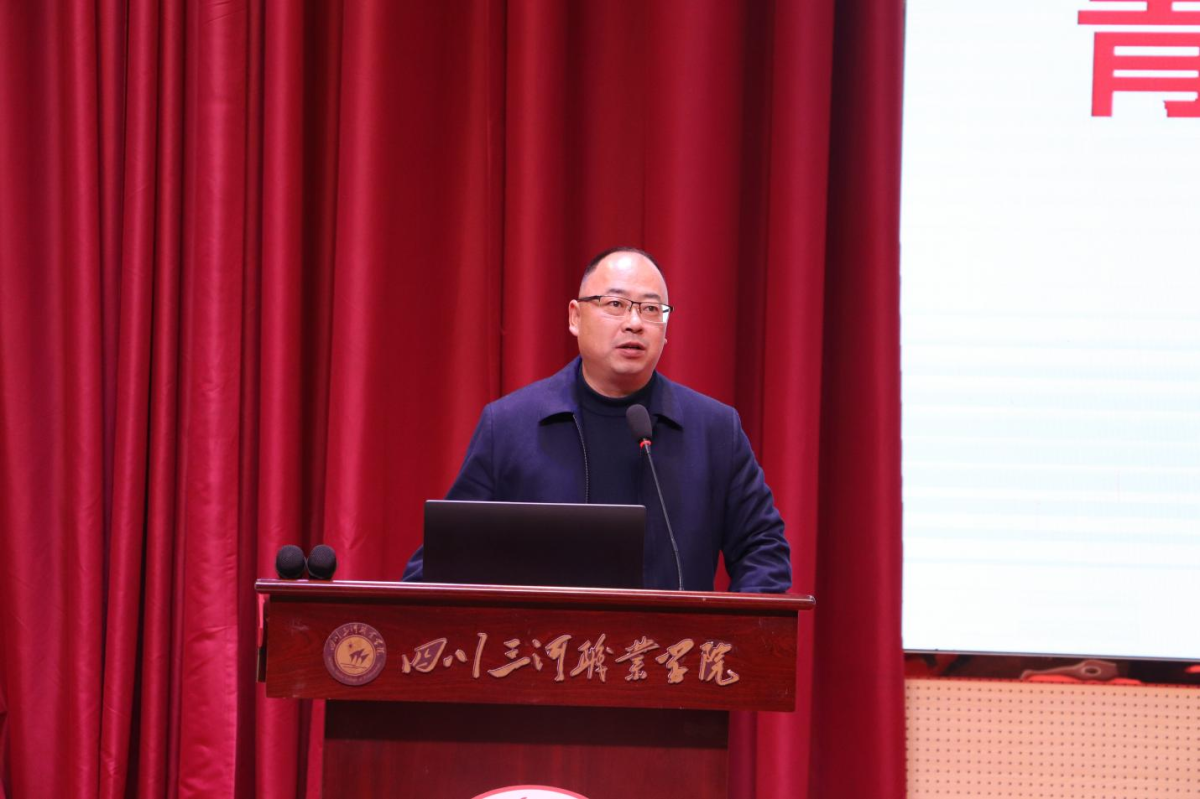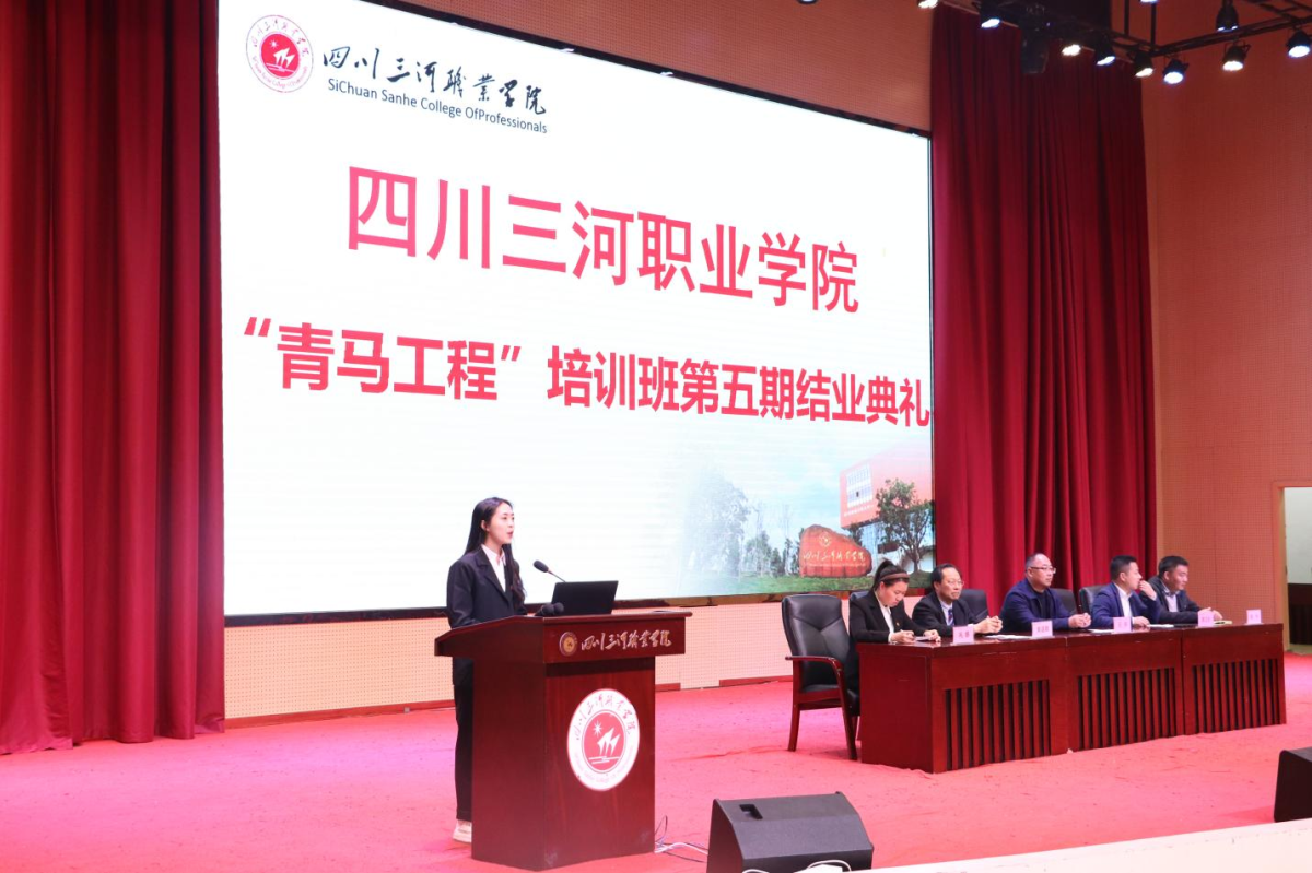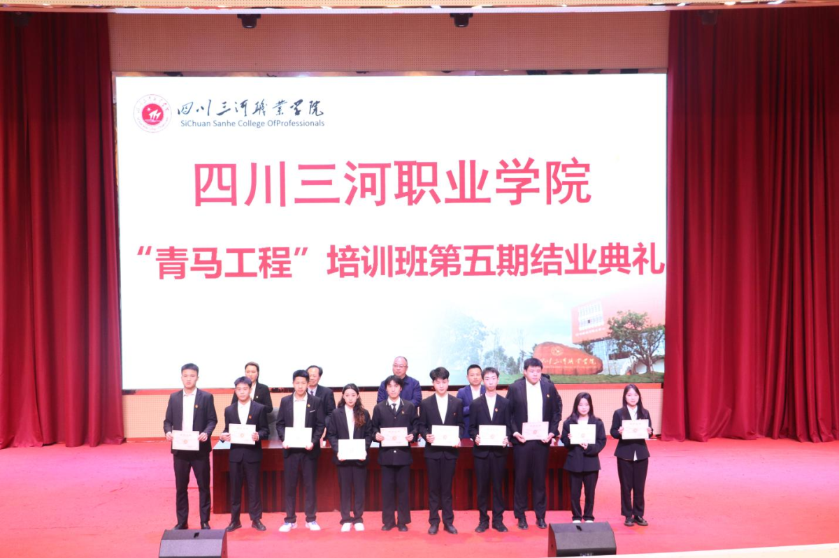 3月17日,四川三河职业学院第五期“青马工程”大学生骨干培训班结业典礼在学术报告厅举行。学校党委副书记、副校长王华,学生处处长、团委书记郭文宇,马克思主义学院副院长黄道勋等领导和各二级学院团总支书记出席,第五期“青马工程”培训班100名学员、各班学生干部代表参加了结业典礼。