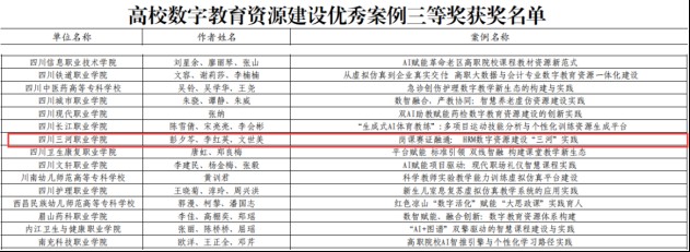 本次评选由四川省教育信息化与大数据中心(四川省电化教育馆)主办,经省内各高校择优推荐,专家对305件申报作品进行严格评审,最终确定并公示获奖作品156件。我校提交的《AI赋能智联共享信息技术课程在线资源建设案例》与《岗课赛证融通:HRM数字资源建设“三河”实践》两项案例脱颖而出。