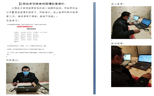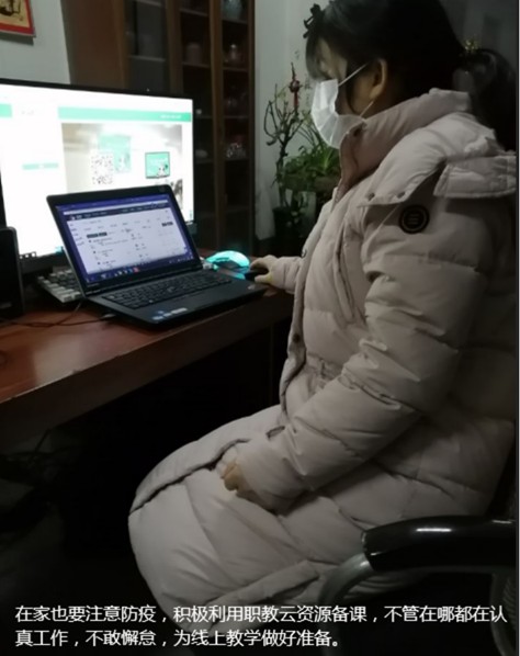 教师们在研究教学、在参与培训、在教学准备、在做防疫宣传……,一心为了教学。