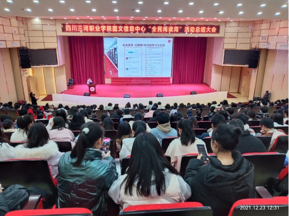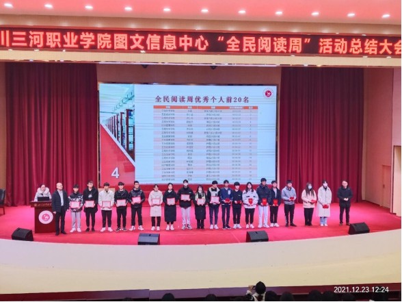 12月23日中午,图文信息中心于在学术报告厅举行“全民阅读周”活动总结表彰大会,全院师生400余人参加,会议由图文信息中心主任龙敏主持。