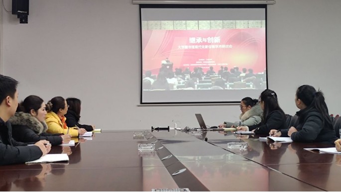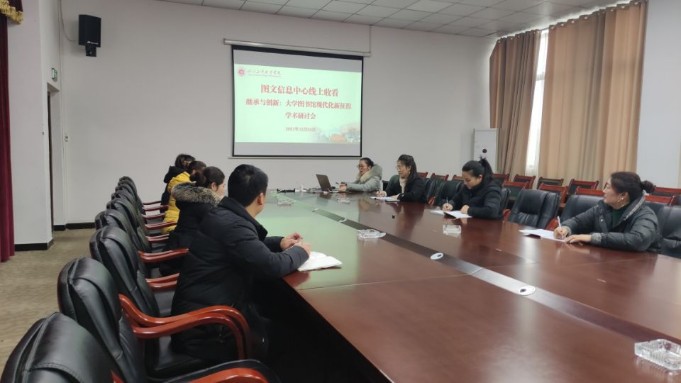 为认真落实四川省普通高等学校图书情报工作指导委员会的文件要求,在龙敏主任的带领下,图文信息中心全体人员在行政楼二会议室集中同步收看了本次学术研讨会的线上直播。