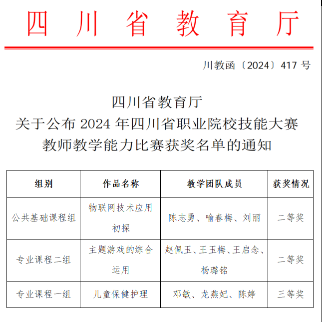 喜报!我校教师在2024年四川省职业院校教师教学能力比赛中荣获佳绩