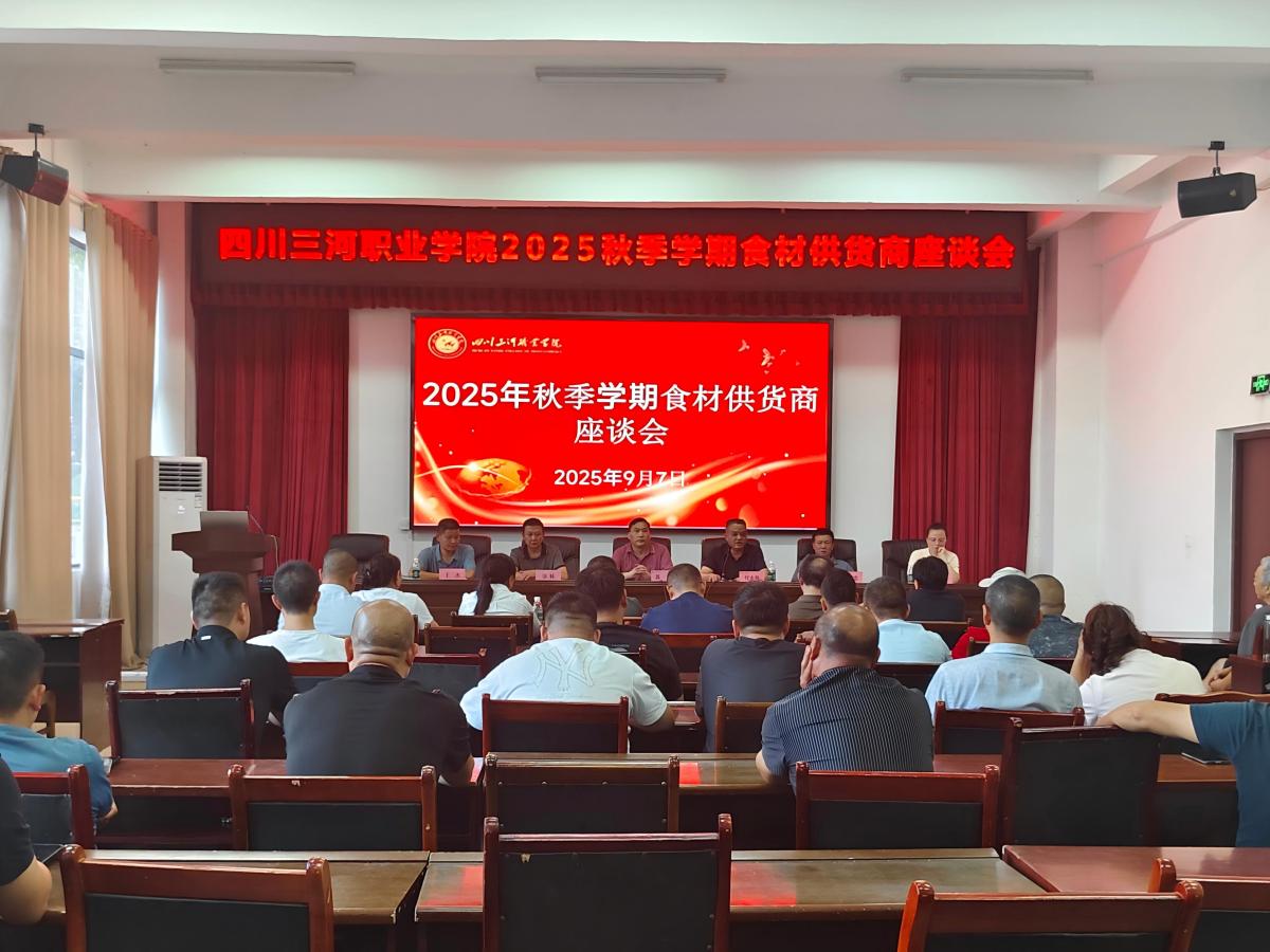 2025-09-10 协同共进,守护舌尖上的安全四川三河职业学院召开食堂超市食材供应商座谈会为进一步加强学校食堂食材安全管理、稳定供应质量、规范合作流程,确保全校师生的饮食健康与安全,9月7日下午,在行政楼三会议室召开食堂超市食材供应商座谈会。县市场监督管理局餐...