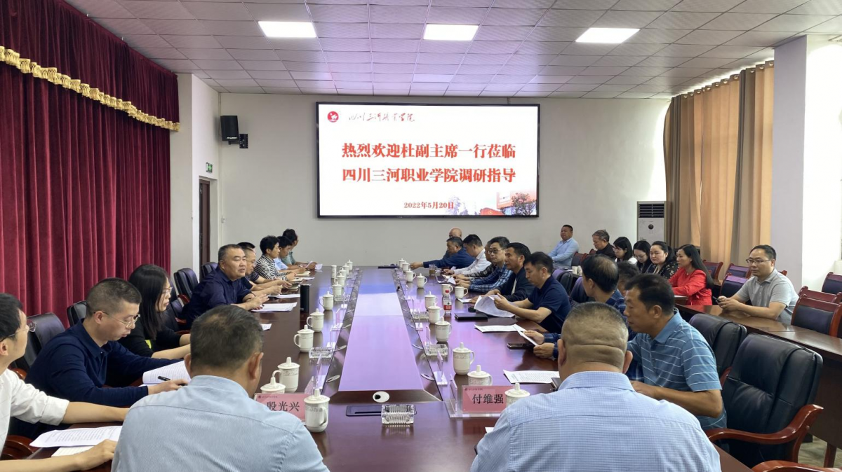 2022-05-21 泸州市政协调研组到校调研指导工作2022年5月20号下午,泸州市政协副主席、民盟泸州市委主委杜旭林带领市政协调研组到四川三河职业学院调研指导并进行座谈交流。合江县政协党组书记、主席刘卫,少岷教育集团董事长王忠平,副总裁胡怀志,四川三河职业学...