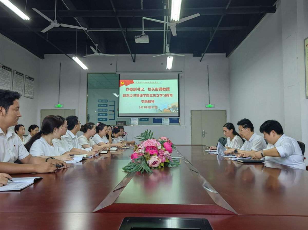 2025-06-30 经济管理学院党总支开展中央八项规定精神学习教育专题党课2025 年 6 月 17 日,经济管理学院党总支组织召开深入贯彻中央八项规定精神学习教育专题党课。校党委副书记、校长彭钢教授莅临现场作专题辅导,学院全体党员、辅导员及专业教师参加学习,...