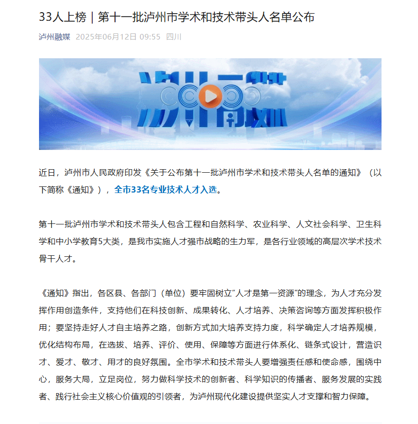 喜报:现代农业技术学院副院长周平荣获泸州市农业科学领域学术和技术带头人称号