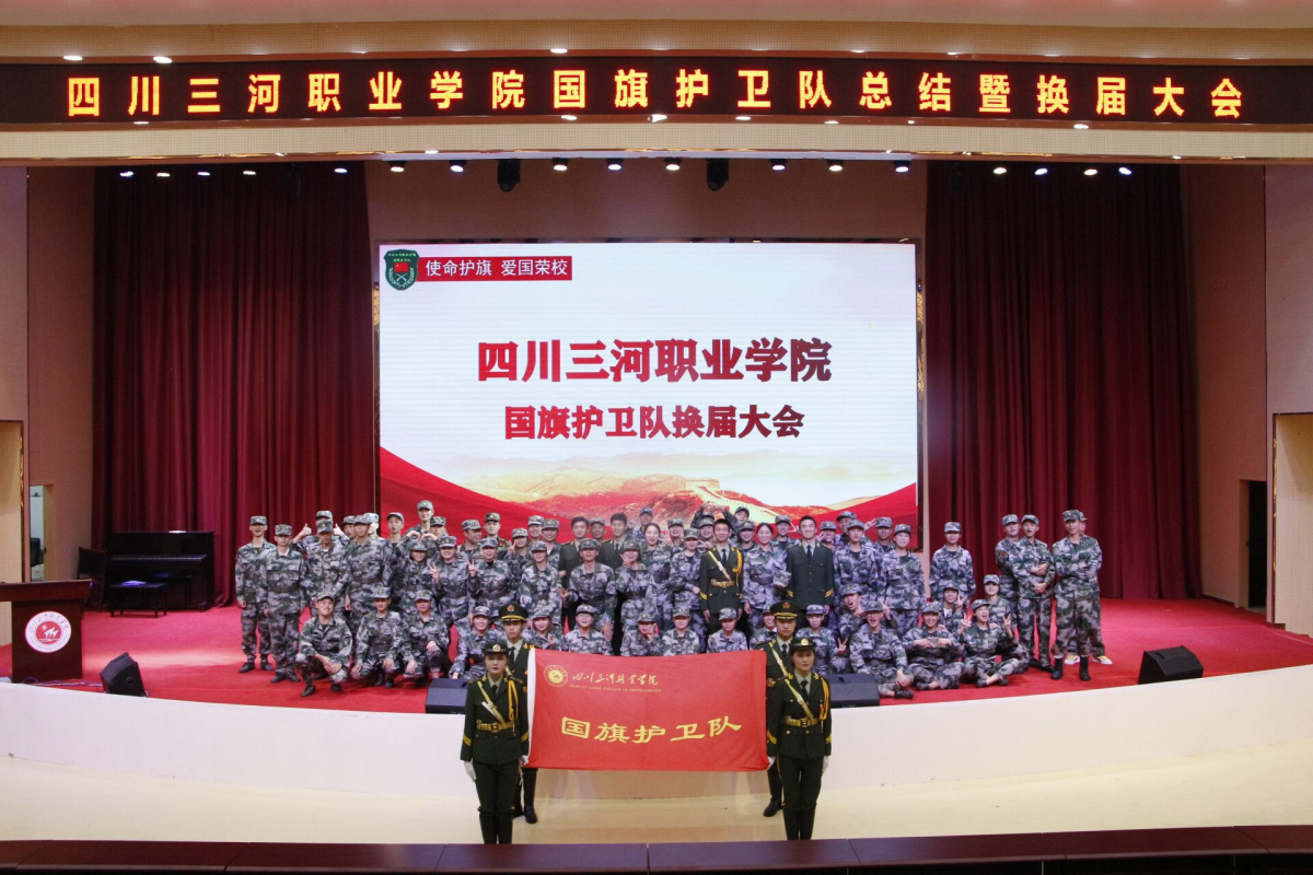 2021-11-01 四川三河职业学院举行国旗护卫队换届仪式10月31日上午,四川三河职业学院2021届国旗护卫队换届仪式在学术报告厅举行。学校党委副书记王华,校团委副书记巩娜,学生处学生科科长汪煜,国旗护卫队指导老师李松桃、姚岱伶,校院团学组织代表和新老队员参...