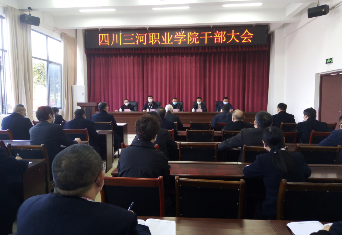 2020-03-23 四川三河职业学院召开干部大会 3月19日下午,四川三河职业学院在行政楼第三会议室召开干部大会。中共四川省委教育工委、四川省教育厅干部人才处处长谢亮冯,学院董事长王忠平,执行董事王文潇,全体学院领导出席会议,中层干部参加了大会。大会由学院院长...