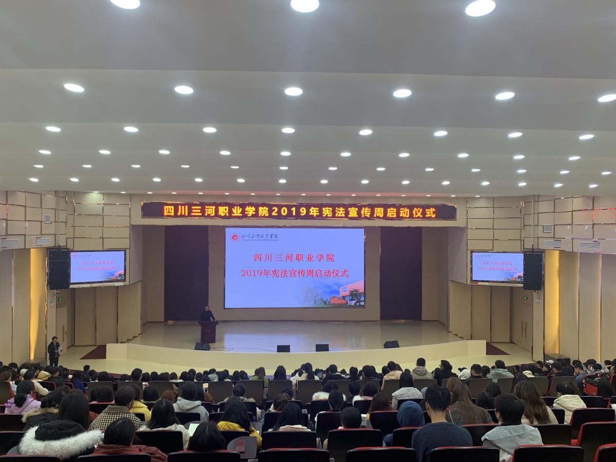 2019-12-06 四川三河职业学院举行2019年“宪法宣传周”启动仪式 12月4日上午,四川三河职业学院学术报告厅,举行2019 年“宪法宣传周”启动仪式,师生代表500余人参加。 启动仪式上,学院党委副书记王华作动员讲话,他强调了是宪法国家的根本大...