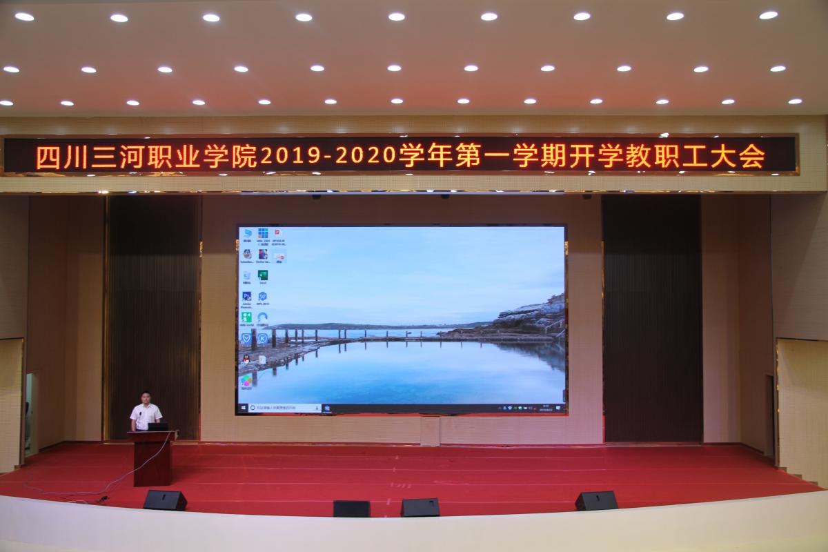 2019-08-24 不忘初心 团结一致 勇于拼搏 实现目标学院召开2019—2020学年第一学期开学教职工大会安排部署新学期开学工作 8月22日上午,四川三河职业学院在学术报告厅召开2018—2019学年第一学期开学教职工大会。四川三河职业学院院长彭方弟、党委...