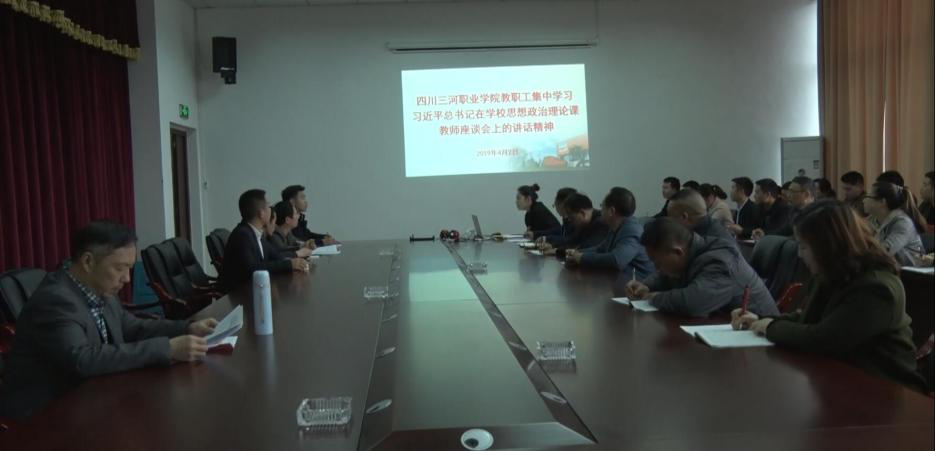 四川三河职业学院组织教职工集中学习习近平总书记在学校思想 政治理论课教师座谈会上的重要讲话精神