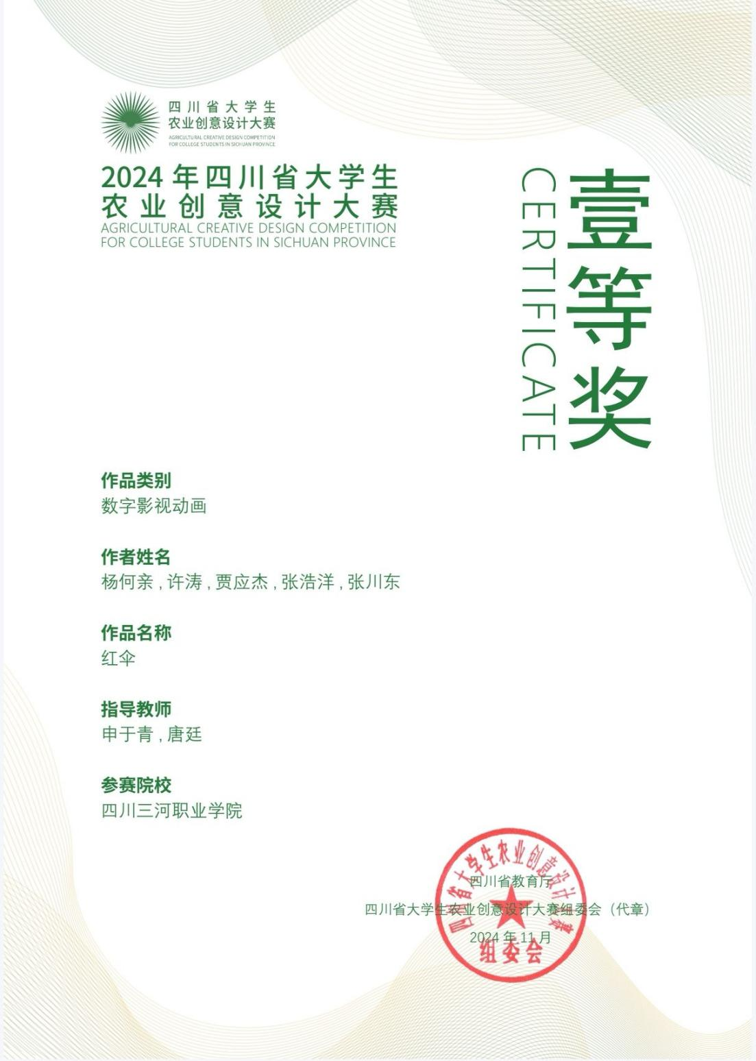 喜报:四川三河职业学院在2024年四川省大学生农业创意设计大赛中荣获一等奖3项、二等奖1项、三等奖7项