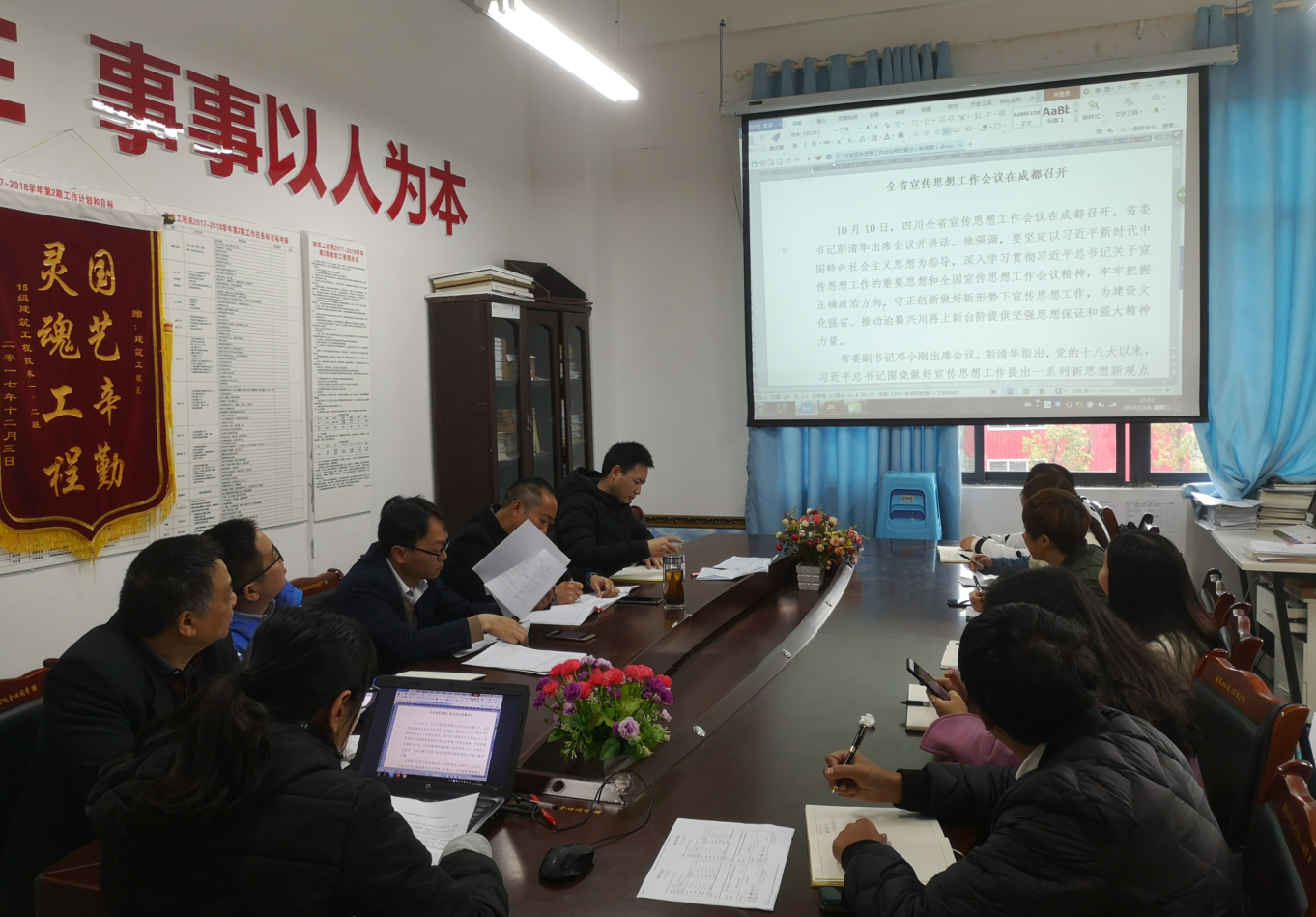 四川三河职业学院全体教职工集中学习全国、全省、全市宣传思想工作会议精神