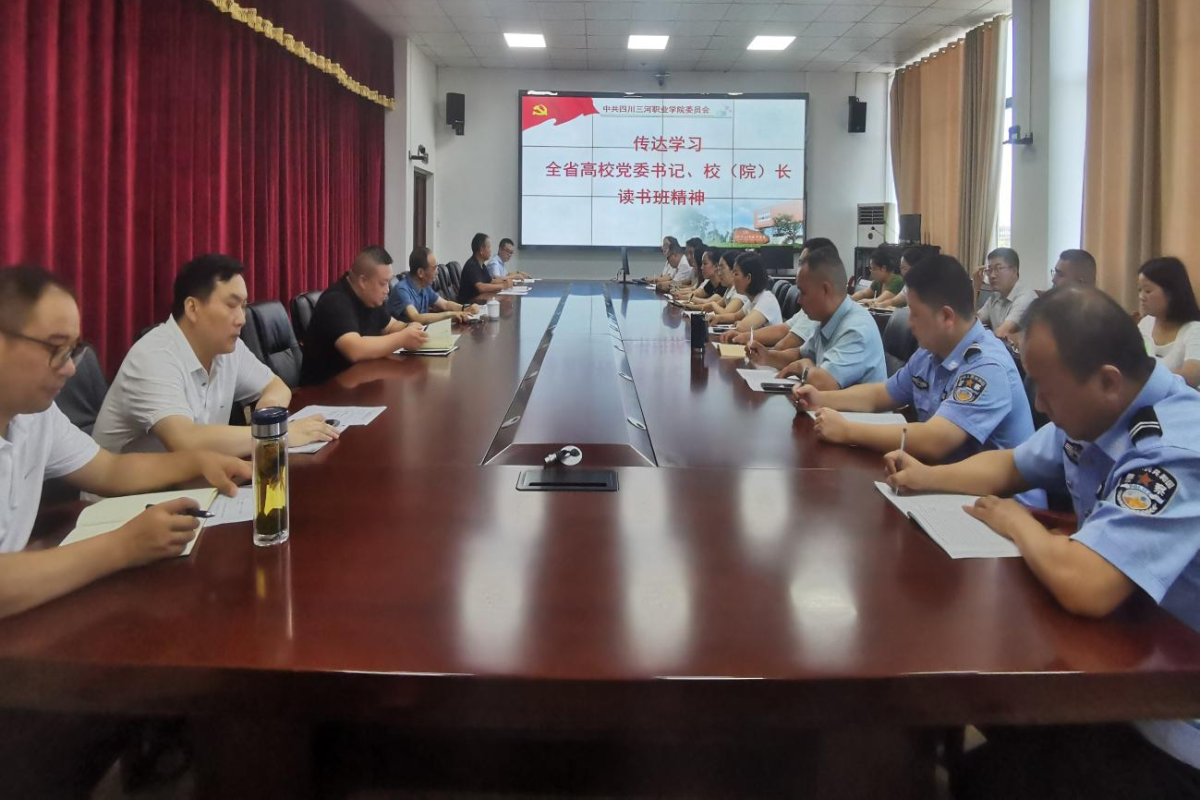 2024-09-06 学习贯彻党的二十届三中全会精神推进学校事业高质量发展——四川三河职业学院召开9月份中心组理论学习(扩大)会2024年9月4日上午,四川三河职业学院在第二会议室召开9月份党委理论学习中心组学习(扩大)会,学习会分两个阶段进行,一是传达学习了全...