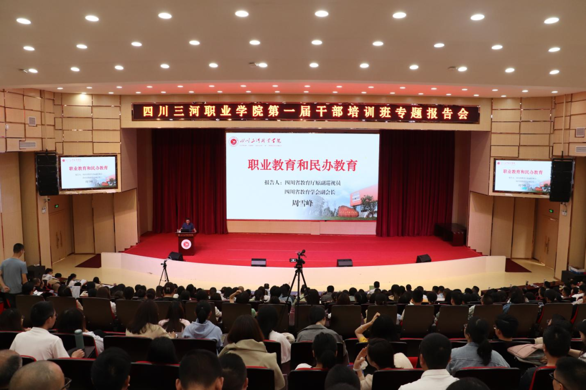 2023-05-24 知使命 强责任 重成效 促发展四川三河职业学院第一届干部培训班举行《职业教育和民办教育》专题报告会为深入学习贯彻习近平新时代中国特色社会主义思想,围绕立德树人根本任务,打造一支思想过硬、能管理、懂教学,具有奉献精神,充满活力的干部队伍,四川...