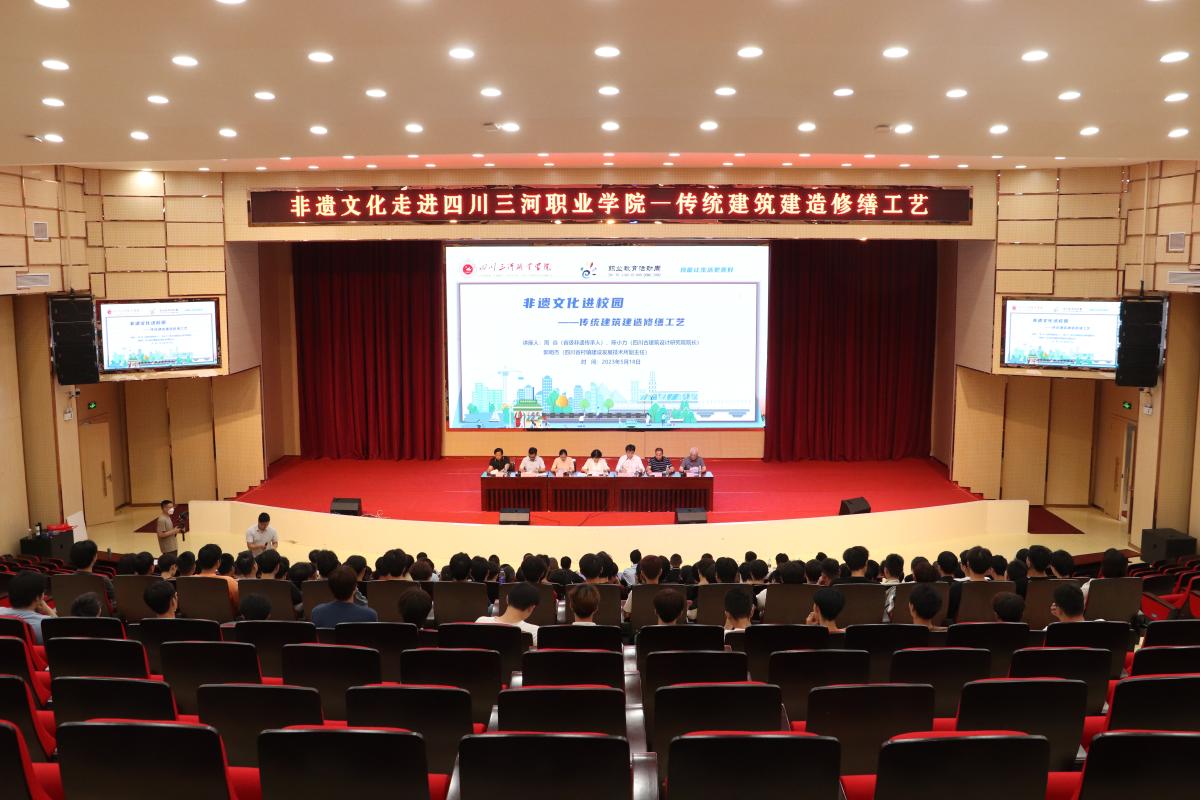 2023-05-20 非遗文化进校园——四川三河职业学院承办传统建筑建造修缮工艺培训班为加强职业教育周宣传工作,弘扬优秀传统文化,5月18日上午9时,由合江县委主办,合江县住建局和学校承办的“传统建筑建造修缮工艺培训班”,在四川三河职业学院学术报告大厅举行。合江...