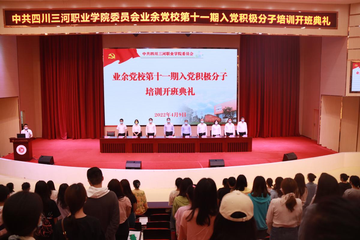 2022-04-10 深化理论学习 坚定理想信念四川三河职业学院业余党校举行第十一期入党积极分子培训根据年度党政工作要点和党委工作计划,党委业余党校于4月9日中午,在学术报告厅和四个阶段教室,采取现场授课与视频直播的方式,举行业余党校第十一期入党积极分子培训开班...