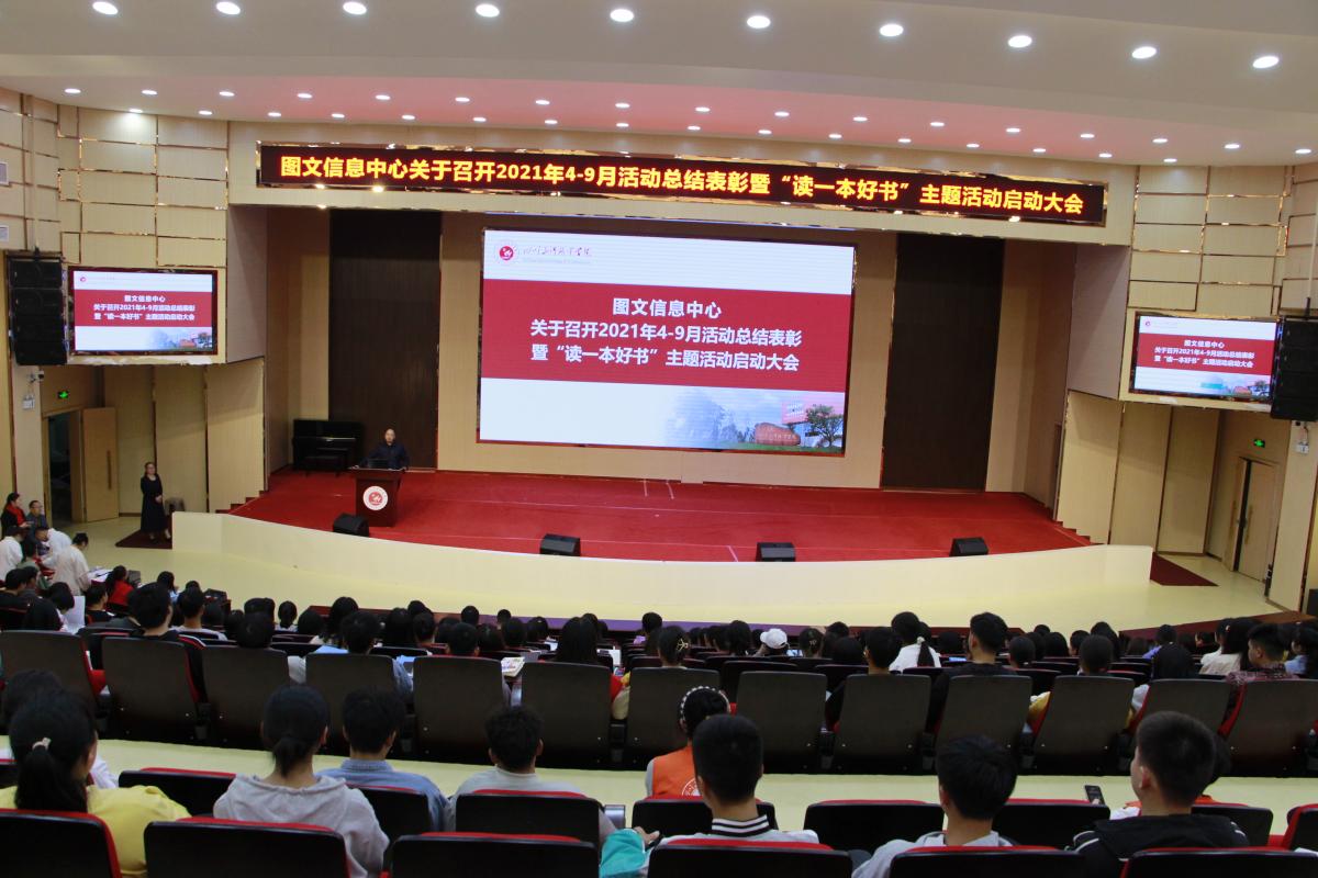 2021-10-15 图文信息中心开展2021年“读一本好书”主题活动启动大会用书籍开启智慧,让智慧点亮人生。10月14日晚,图文信息中心举行2021年上半年读书活动总结表彰暨“读一本好书”主题活动启动大会。学生处、教务处、各二级学院的领导和教师以及300余名学...