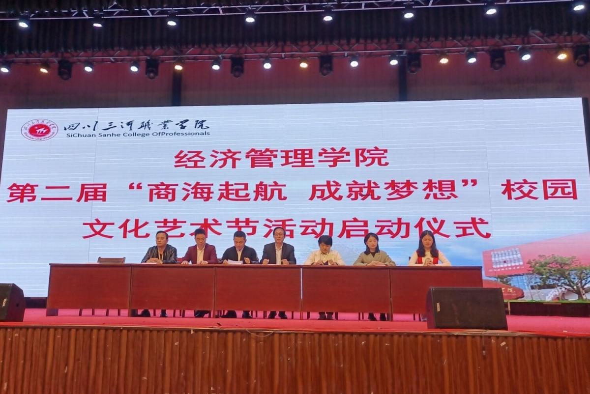 2021-10-13 经济管理学院第二届“商海起航 成就梦想”校园文化艺术节开幕为丰富大学生校园文化生活,展现学生良好精神风貌, 10月12日,四川三河职业学院经济管理学院隆重举行第二届“商海起航,成就梦想”校园文化艺术节开幕式,经济管理学院院长冯俊学、校团委书...