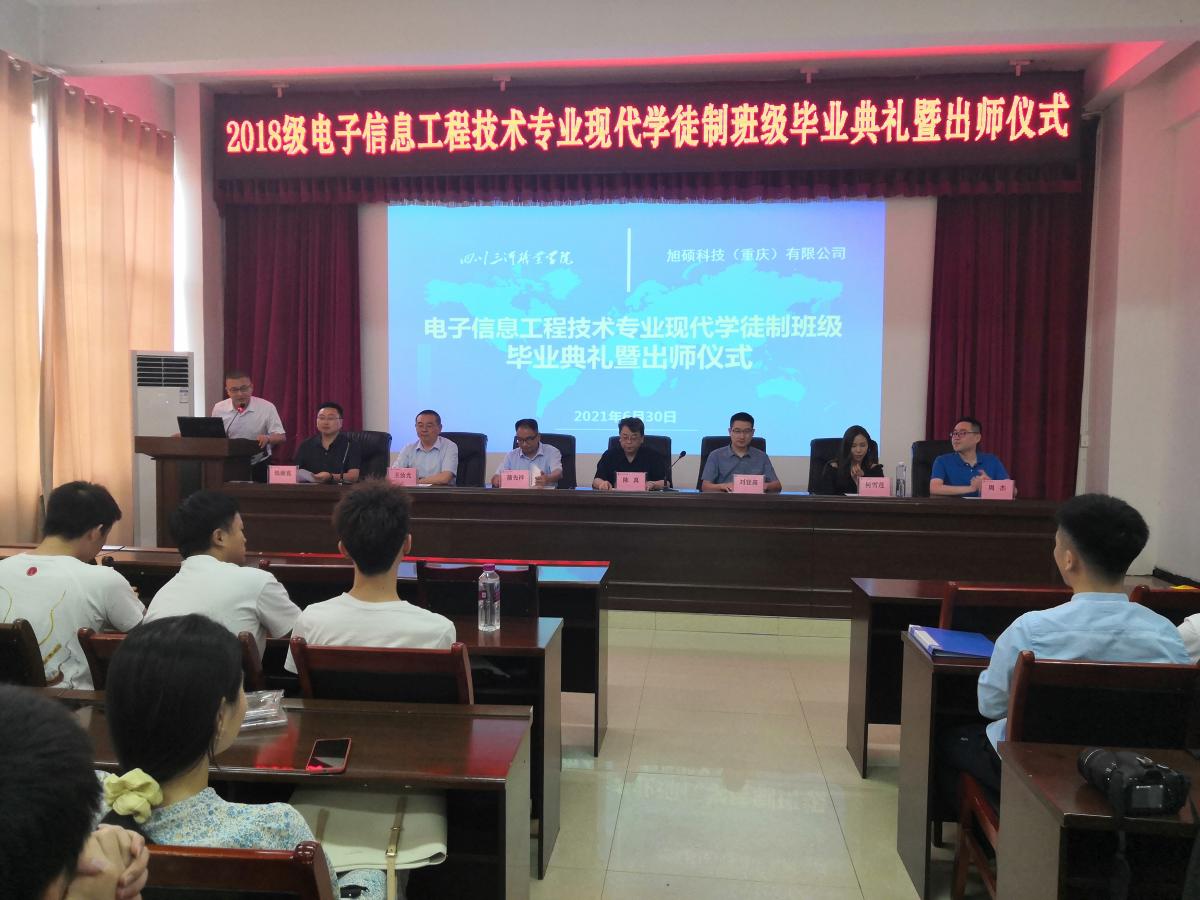 2021-07-02 深化产教融合、校企合作,创新职业教育、协同育人——2018级现代学徒制班举行毕业典礼暨出师证颁发仪式6月30日,四川三河职业学院与旭硕科技(重庆)有限公司,在第三会议室隆重举行了2018级电子信息工程技术专业毕业典礼暨出师证颁发仪式。四川三...