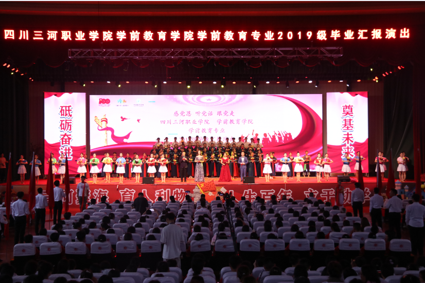 2021-06-16 感党恩 听党话 跟党走——学前教育学院举行2019级学前教育专业毕业汇报演出6月15日晚,四川三河职业学院学前教育学院在博山礼堂举行以“砥砺奋进 奠基未来”为主题的2019级学前教育专业毕业汇报演出。学校执行董事王文潇、校长彭方弟、党委书记...