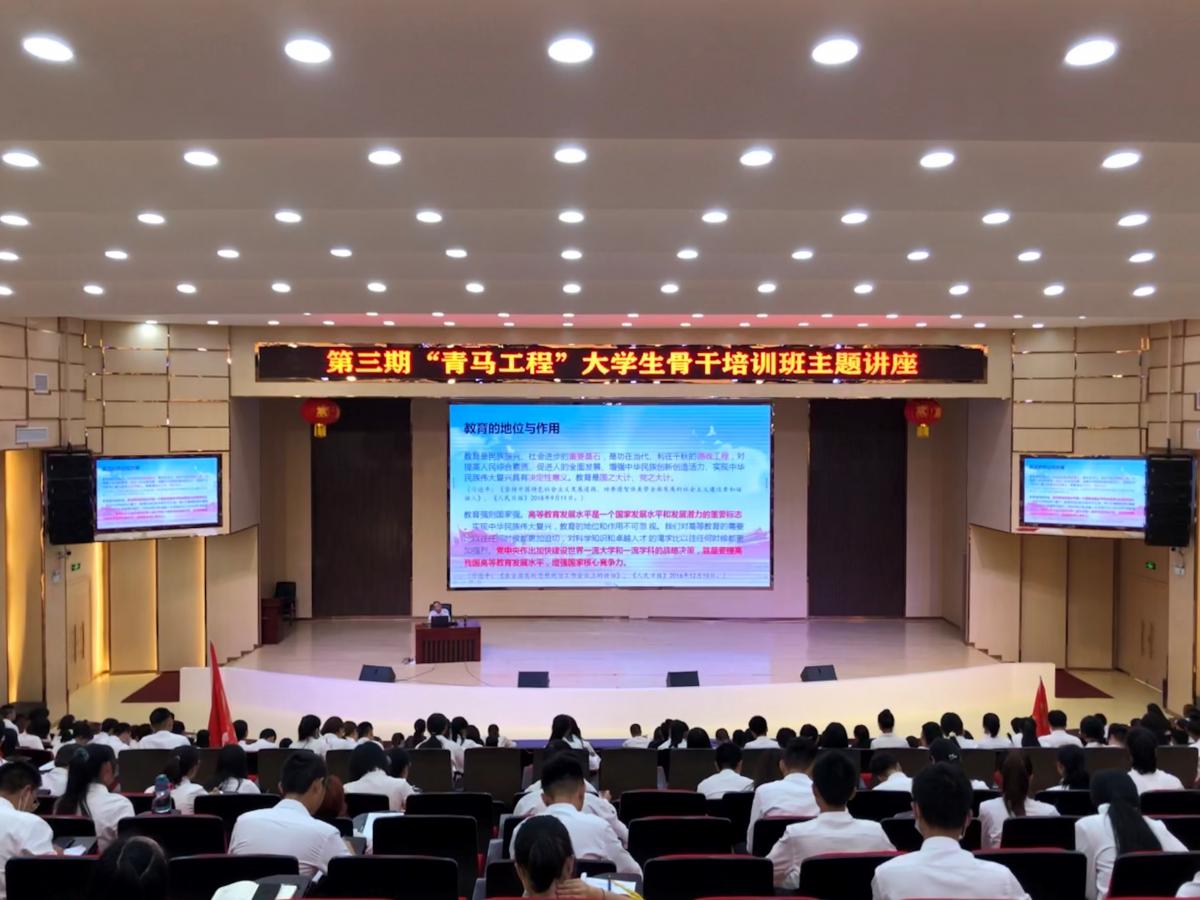 2020-06-26 学习重要论述,争做合格人才6月23日下午,学院第三期“青马工程”大学生骨干培训班主题讲座在学术报告厅举行。学院党委书记、教授叶昌伦做了关于“深入学习习近平总书记关于教育的重要论述”的报告。学院党委书记、教授叶昌伦在报告中提出,“培养什么人、...