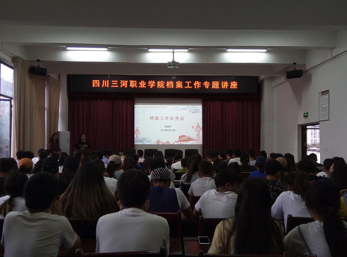 2019-06-20 四川三河职业学院举办纪念“国际档案日”档案工作专题讲座活动 根据《学院关于开展“国际档案日”系列宣传活动的通知》活动要求,6月14日上午,学院在行政楼三会议室举办档案工作专题讲座。本次讲座邀请泸州市档案馆馆务利用科科长钟建萍作《档案工作...