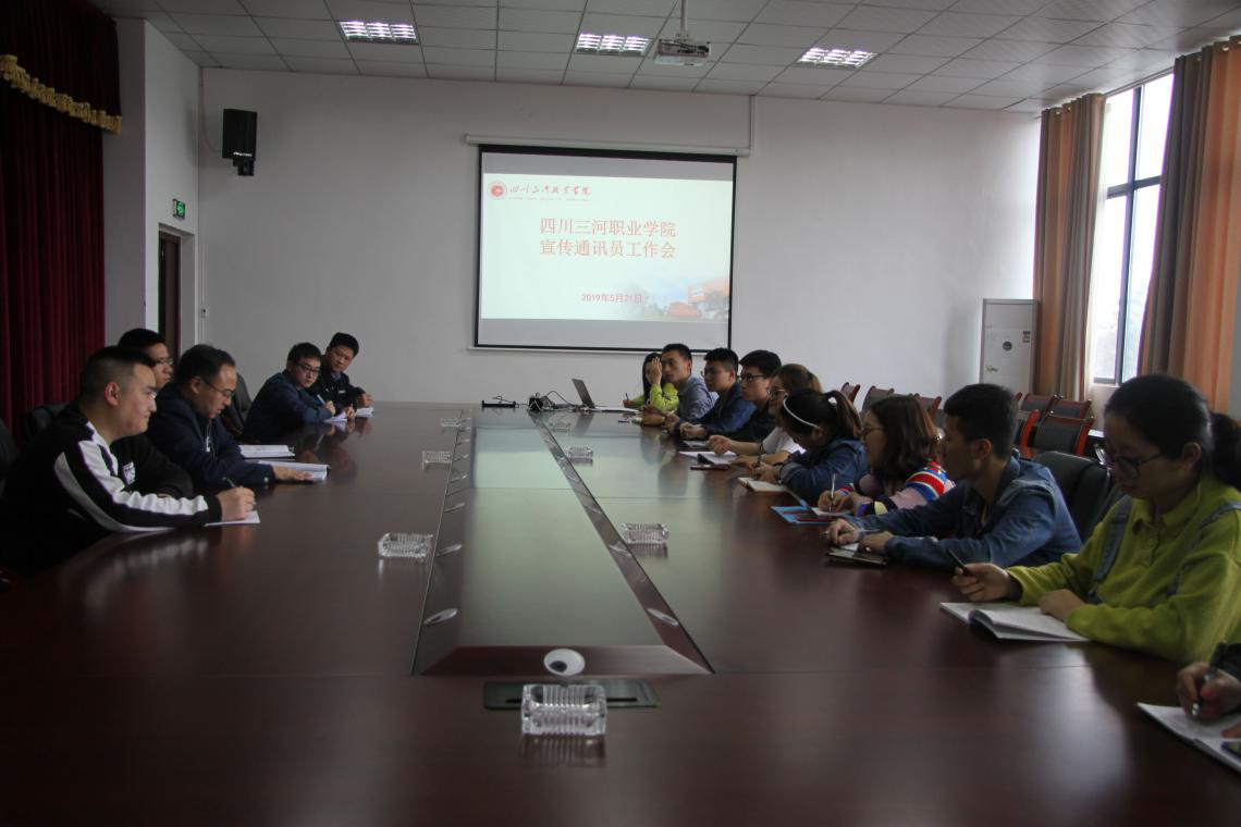 2019-05-23 四川三河职业学院召开新闻宣传通讯员工作会 5月21日下午,四川三河职业学院在二会议室召开新闻宣传通讯员工作会。学院党委宣传部部长杨杰及各系部宣传新闻通讯员教师、宣传部全体人员参加了会议。会议由宣传部何莉老师主持。 杨杰从稿件撰写、新...