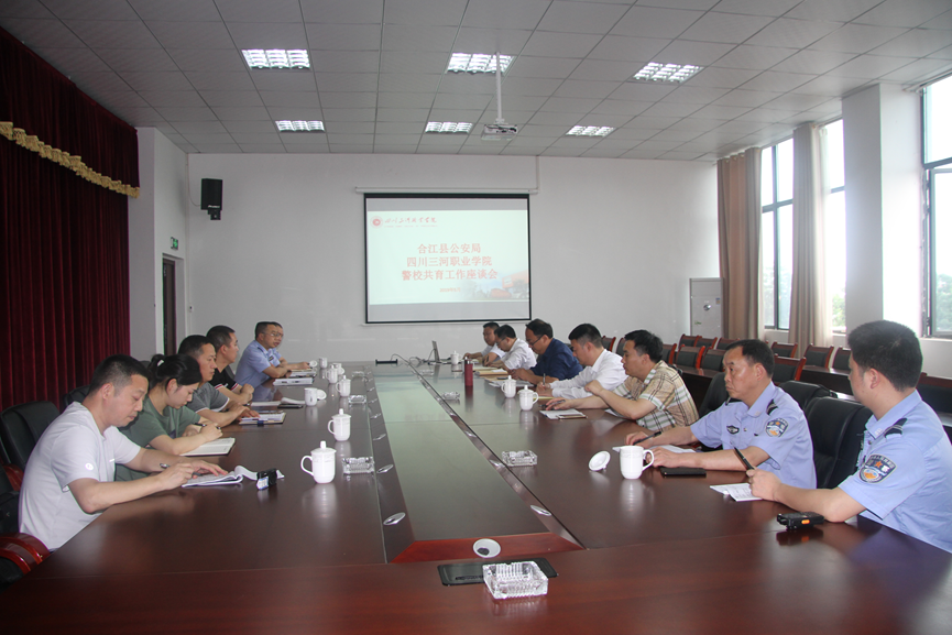 2019-05-29 警校联动共筑平安校园 5月27日上午,合江县公安局国保大队王利东大队长一行莅临我院就“警校共育”事宜与学院领导进行沟通座谈。 学院党委书记王文潇、副书记王华、副院长苏彬、保卫处副处长蔡先强、学生处副处长林治国参加座谈。会上,王大队长...