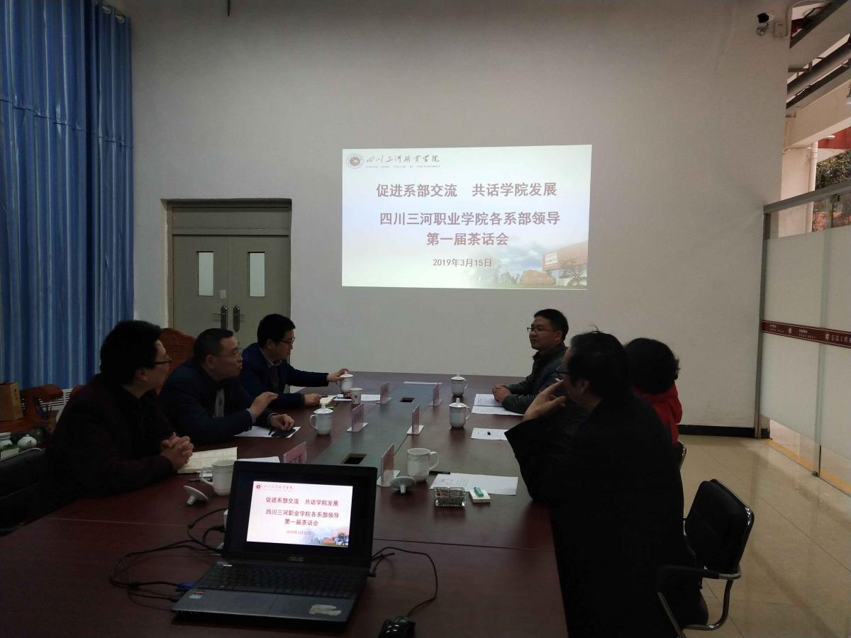 2019-03-15 促进系部交流 共谋学院发展四川三河职业学院召开系部领导第一届茶话会 为深入学习全国全省教育大会精神,贯彻新时代党和国家的教育方针政策,增强我院各系部交流,把我院建设成为“三个满意”的品牌学院,3月14日,我院召开了系部领导第一届茶话会。...