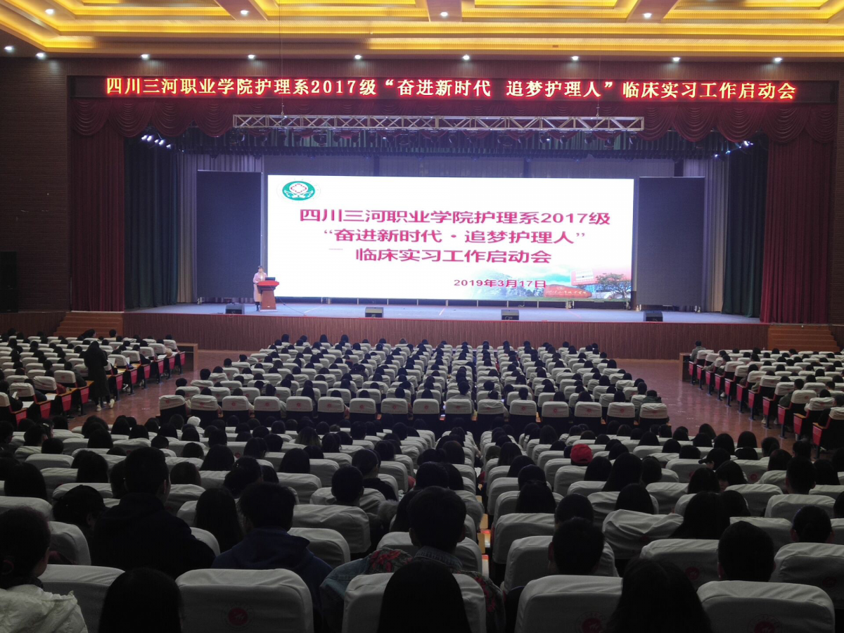 2019-03-19 护理系开展“奋进新时代,追梦护理人”临床实习工作启动会 护理临床实习是培养学生实际工作能力、建立临床思维、树立良好职业道德、掌握正确处理医患关系方法的重要环节。2017级护理系全体师生于3月17日晚,在博山礼堂开展了以“奋进新时代....
