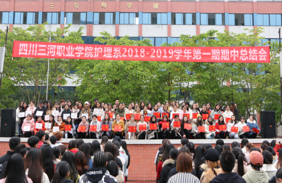 2018-12-18 护理系开展2018-2019学年第一学期期中总结大会 12月11日下午,四川三河职业学院护理系在博山篮球场开展了学生工作半期总结大会,与会领导有护理系主任、副主任及护理系全体师生。会议由护理系团总支书记蔡华老师主持。 副主任龙敏对前半期教...