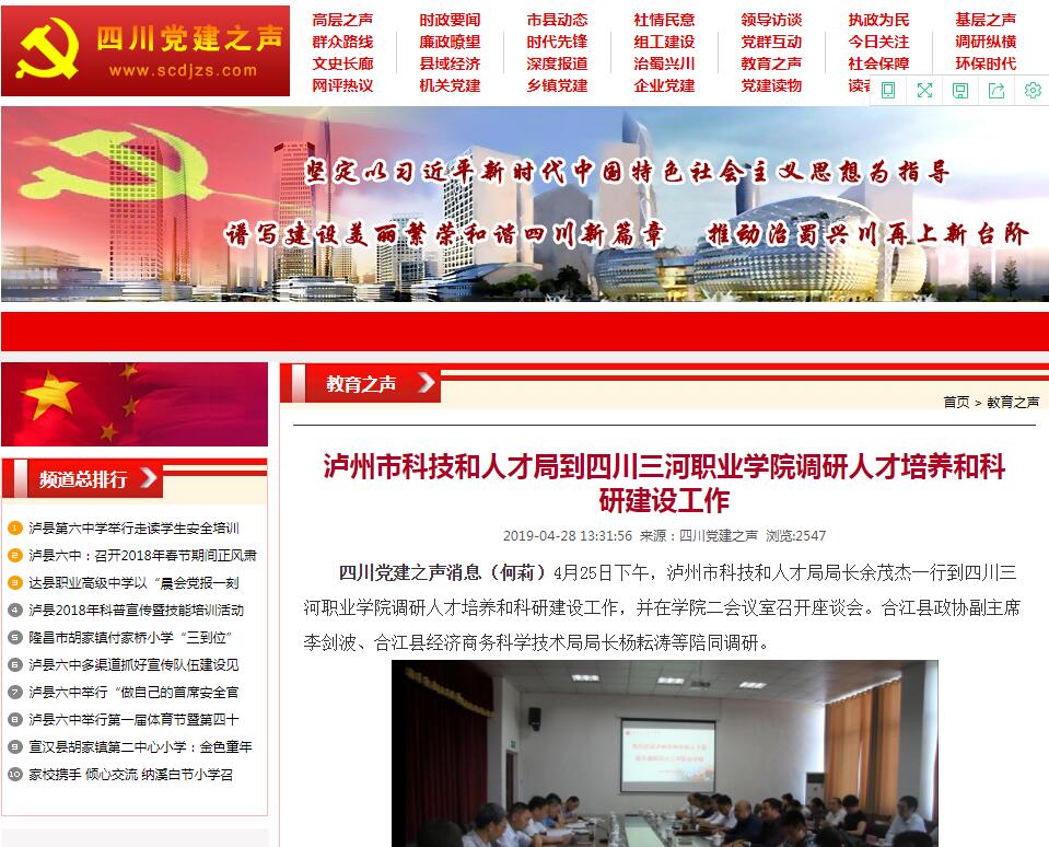 四川党建之声:泸州市科技和人才局到四川三河职业学院调研人才培养和科研建设工作