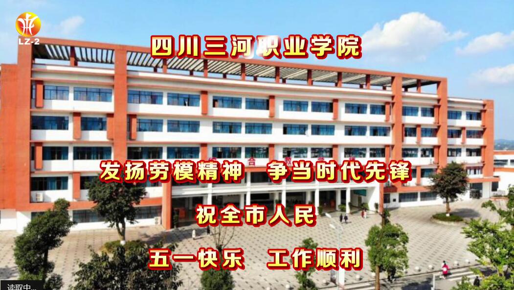 泸州电视台播放五一国际劳节四川三河职业学院祝贺语宣传展播。