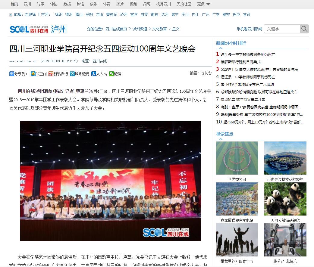 四川在线:四川三河职业学院召开纪念五四运动100周年文艺晚会