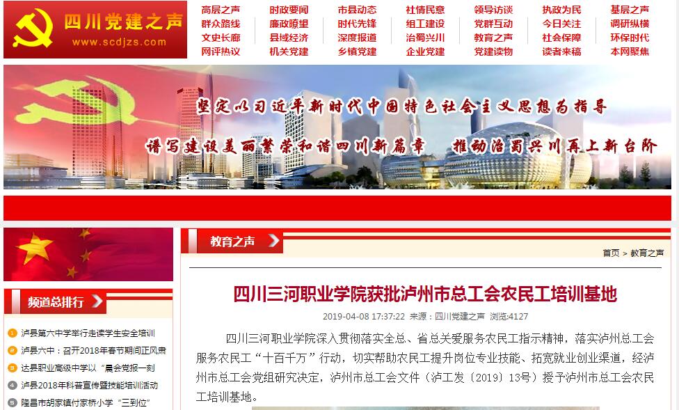四川党建之声:四川三河职业学院获批泸州市总工会农民工培训基地