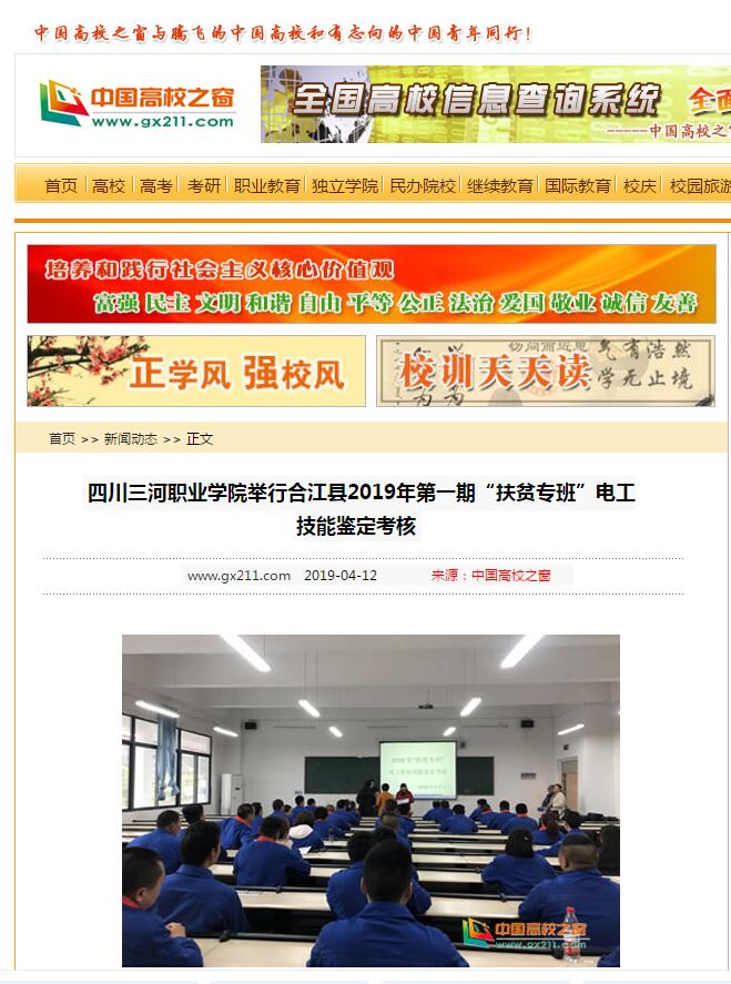 中国高校之窗:四川三河职业学院举行合江县2019年第一期“扶贫专班”电工技能鉴定考核