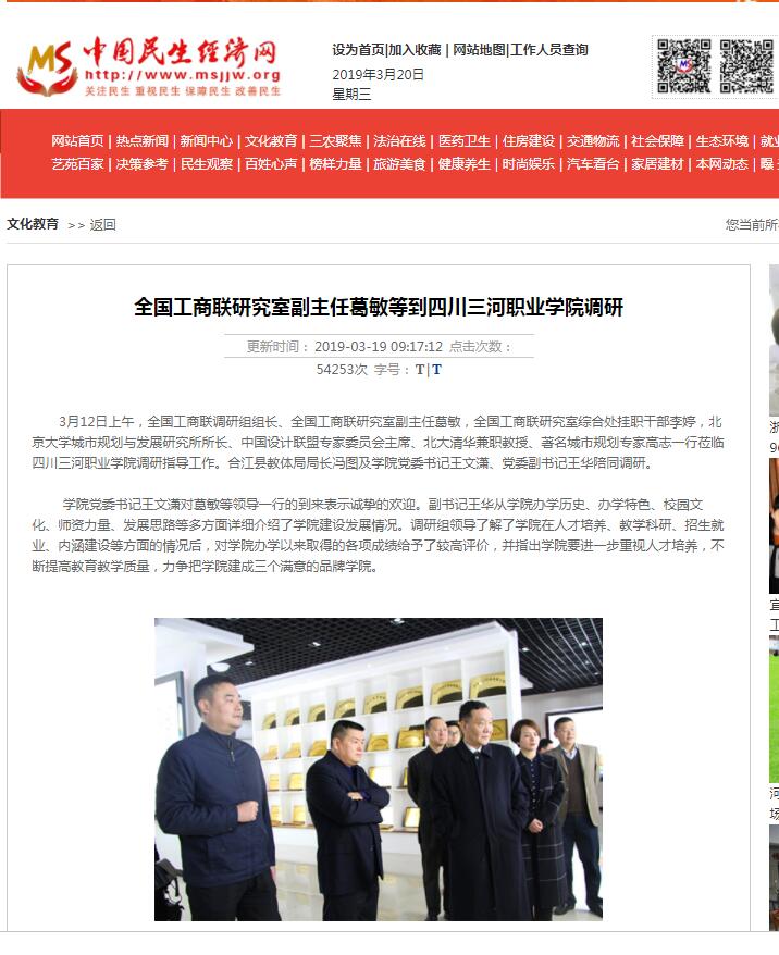 中国民生经济网:全国工商联研究室副主任葛敏等到四川三河职业学院调研