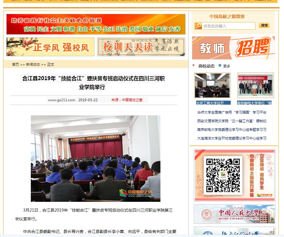中国高校之窗:合江县2019年“技能合江”暨扶贫专班启动仪式在四川三河职业学院举行