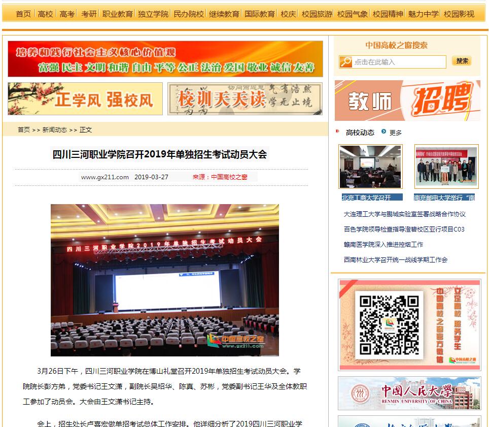 中国高校之窗:四川三河职业学院召开2019年单独招生考试动员大会