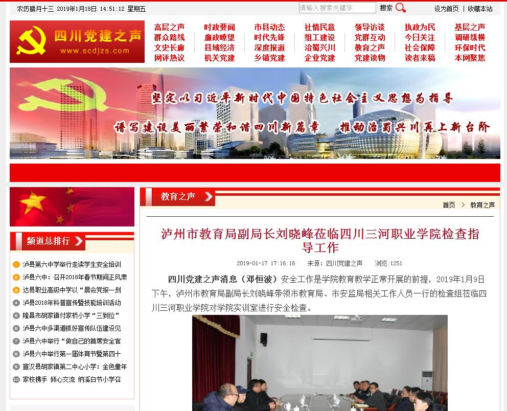 2019-01-18 来源:四川党建之声时间:2019年1月17日链接:http:www.scdjzs.comhtmljyzs2019011774113.html...Copyright © 2018 地址:四川省泸州市合江荔城大道500号 邮编:646200
