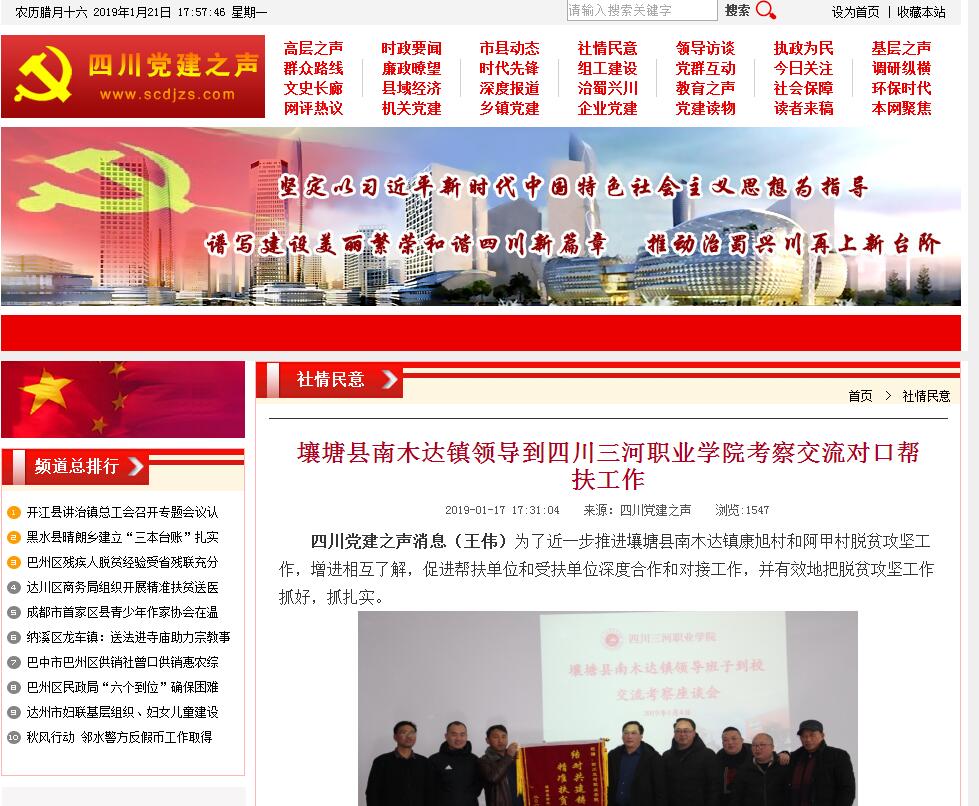 2019-01-21 来源:四川党建之声时间:2019年1月17日链接:http:www.scdjzs.comhtmlsqmy2019011774117.html...