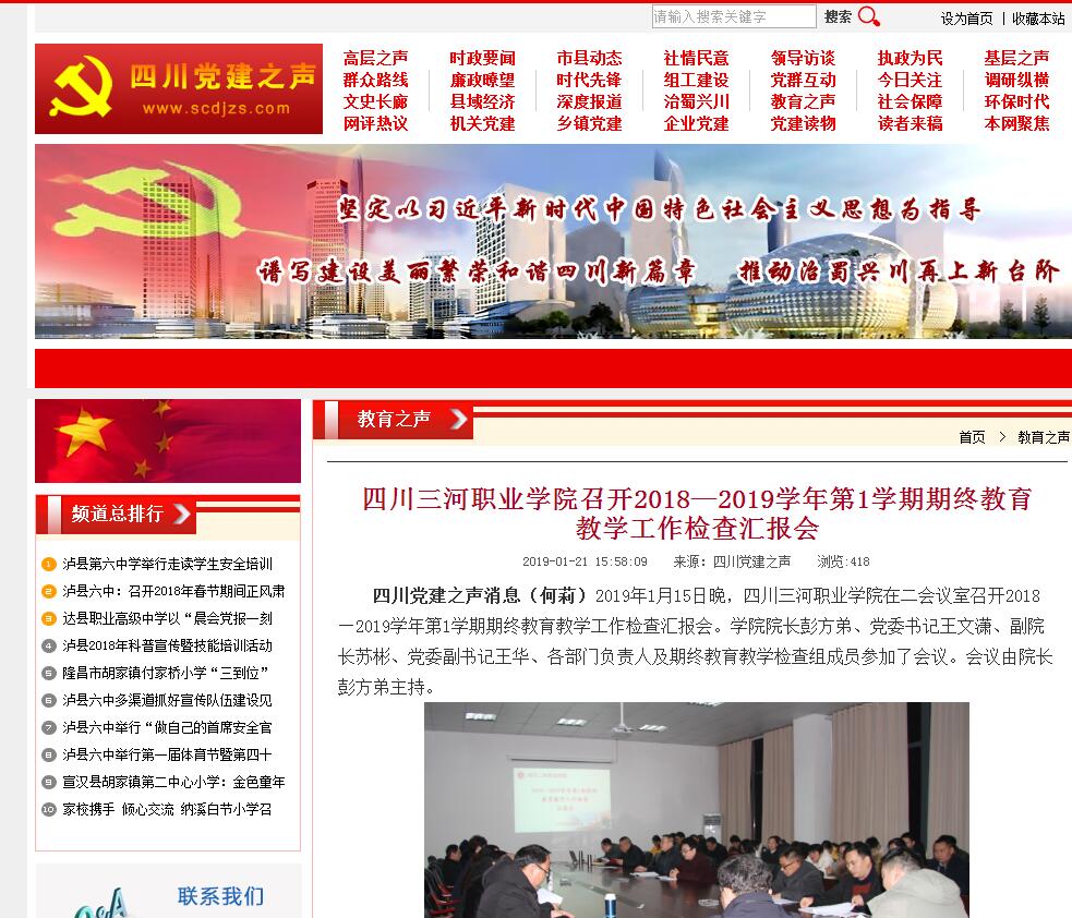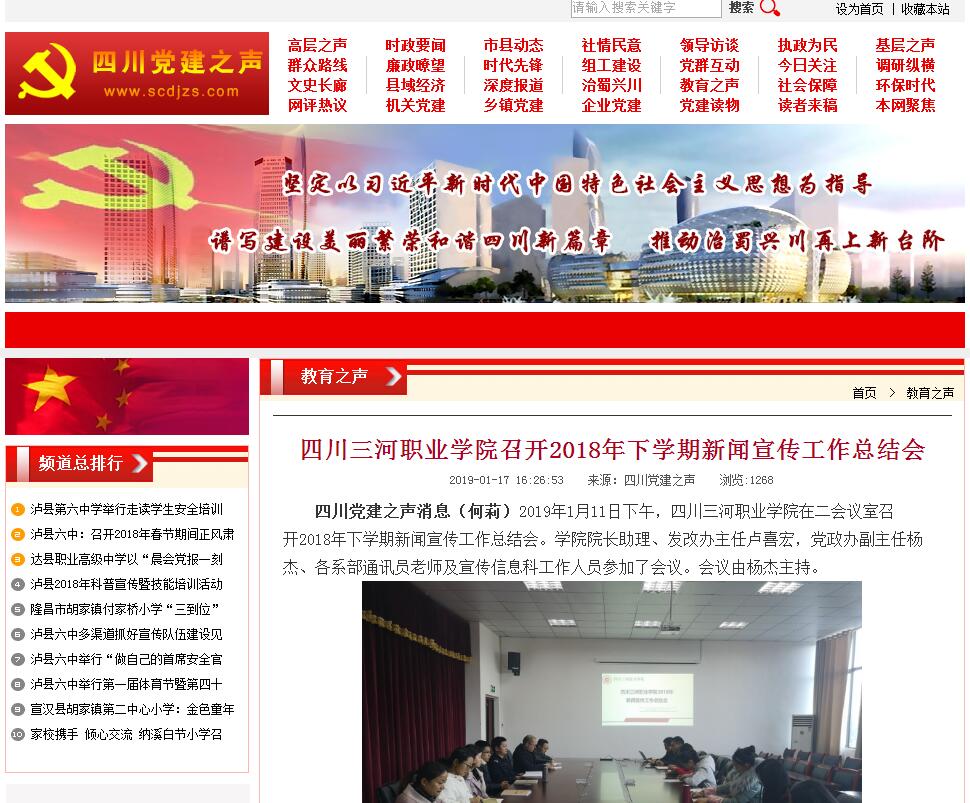 四川党建之声:四川三河职业学院召开2018年下学期新闻宣传工作总结会