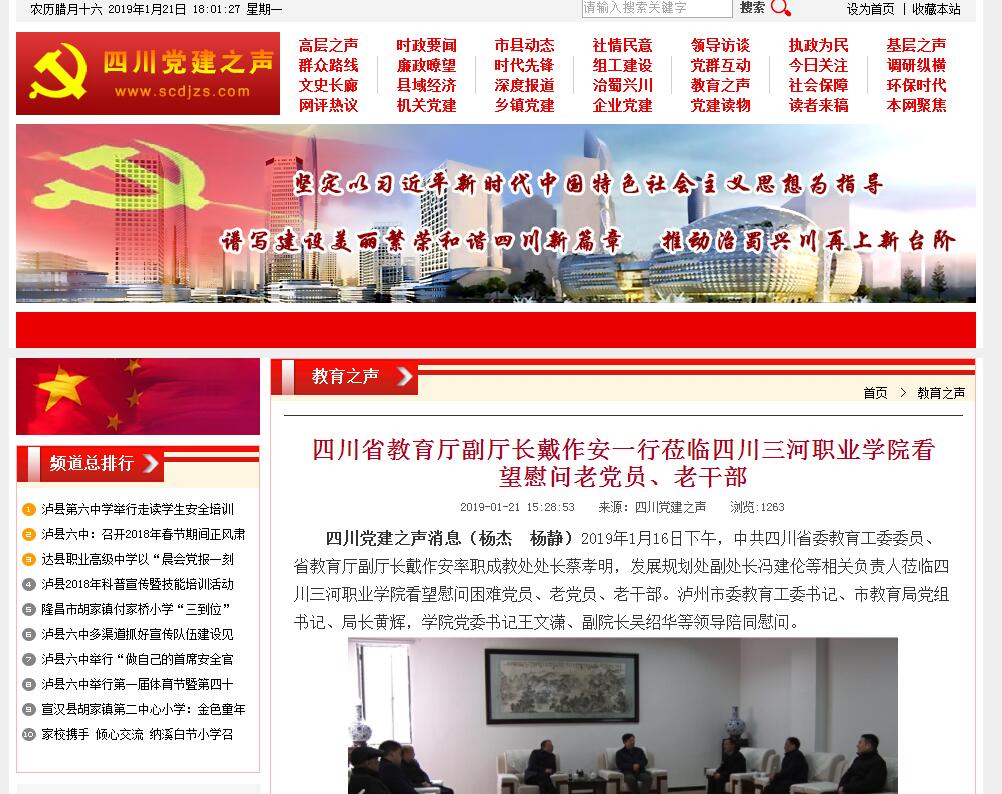 2019-01-21 来源:四川党建之声时间:2019年1月21日链接:http:www.scdjzs.comhtmljyzs2019012174240.html...