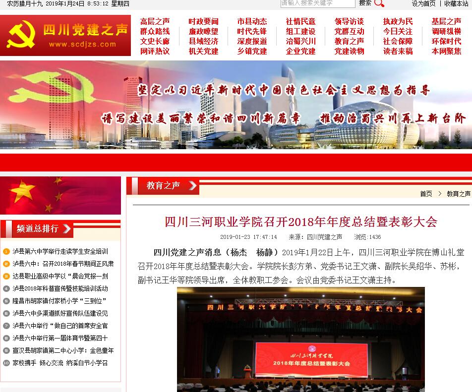 四川党建之声:四川三河职业学院召开2018年年度总结暨表彰大会