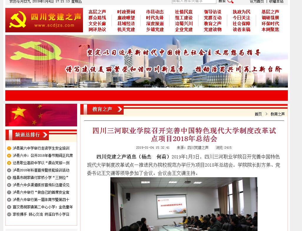 四川党建之声:四川三河职业学院召开完善中国特色现代大学制度改革试点项目2018年总结会