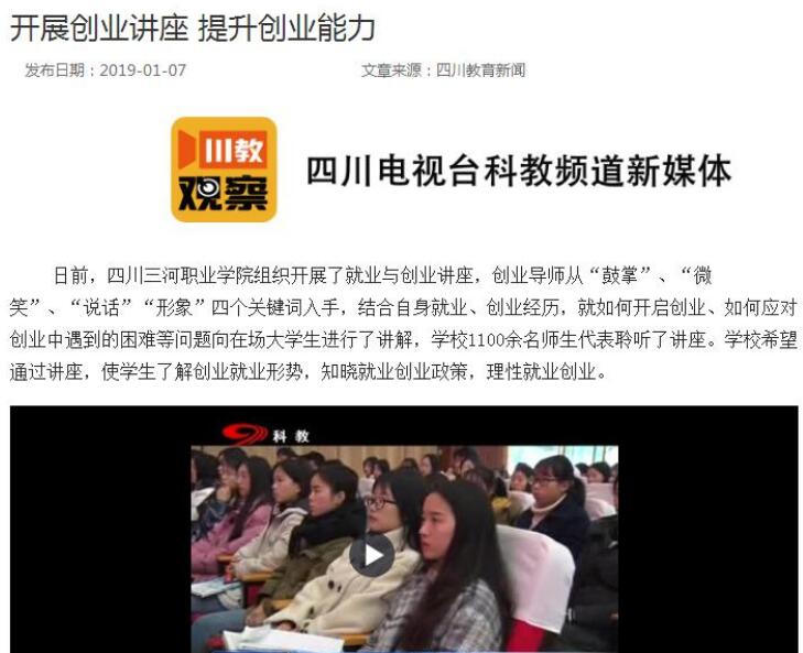 四川电视台科教频道:四川三河职业学院开展创业讲座 提升创业能力